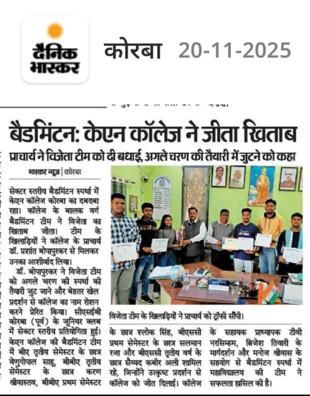 FUTURE PLAN : 1)To build a Badminton Court at college campus. 2)Looking for a separate playing ground for the students of college. 3)Determine to motivate the students for maximum participation in sports.